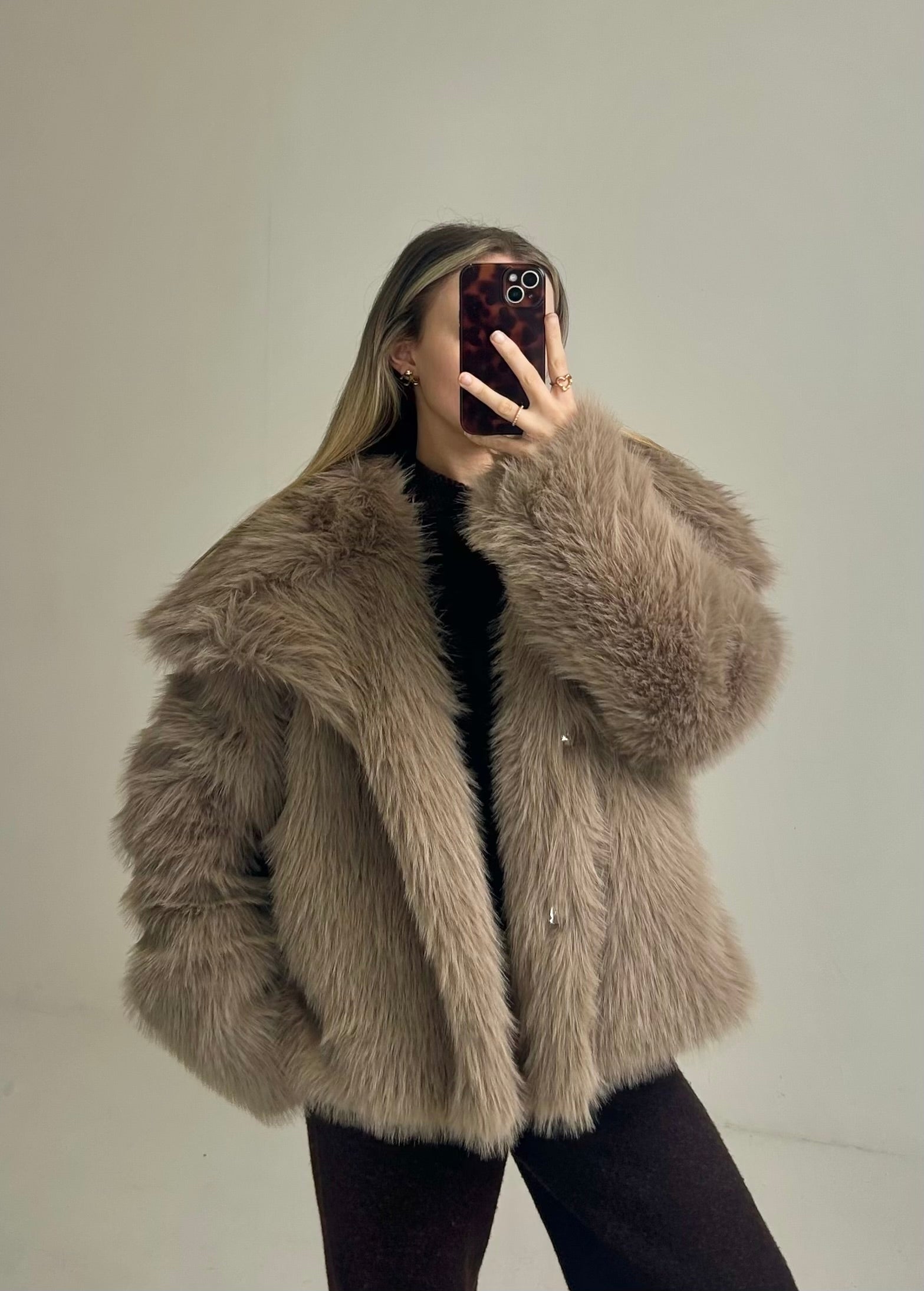 ALBA Faux Fur Long Sleeved Short Jacket In Mocha