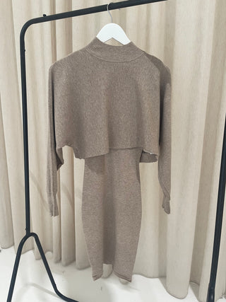 MABEL Knitted Long Sleeved Button Up Cardigan & Pleated Skirt Co-Ord In Chocolate Truffle