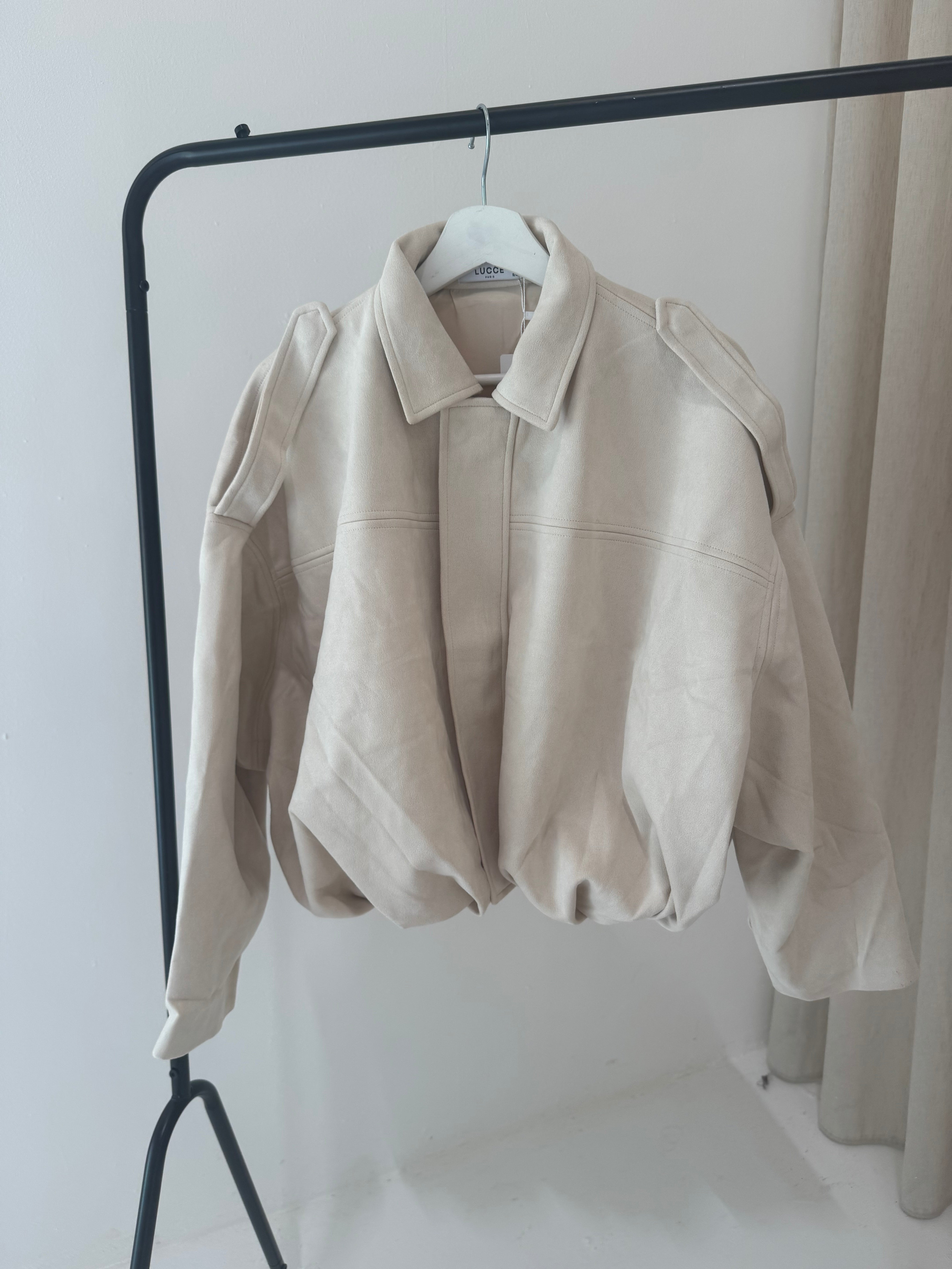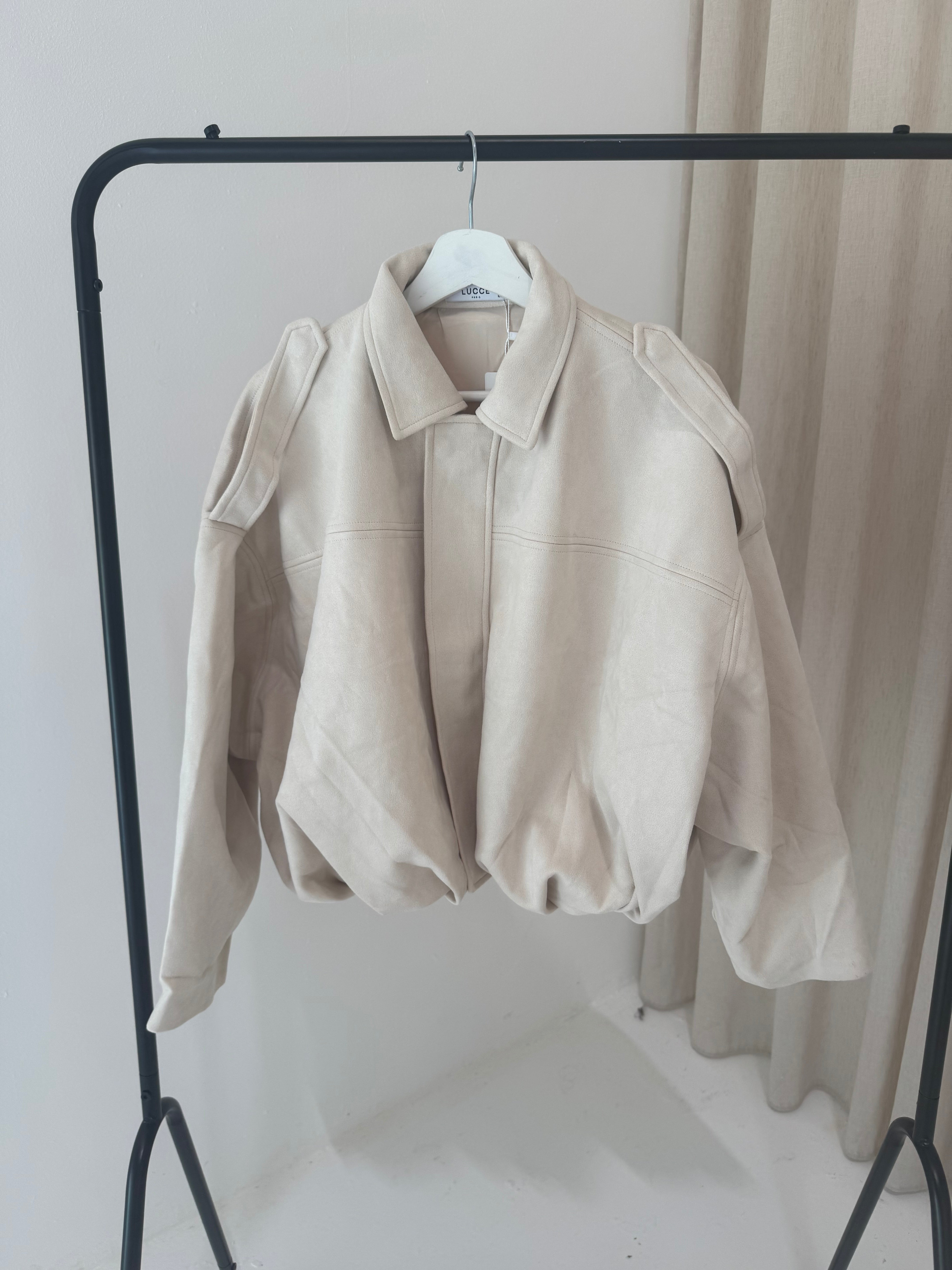 MAPLE Long Sleeved Suede Look Bomber Jacket In Cream