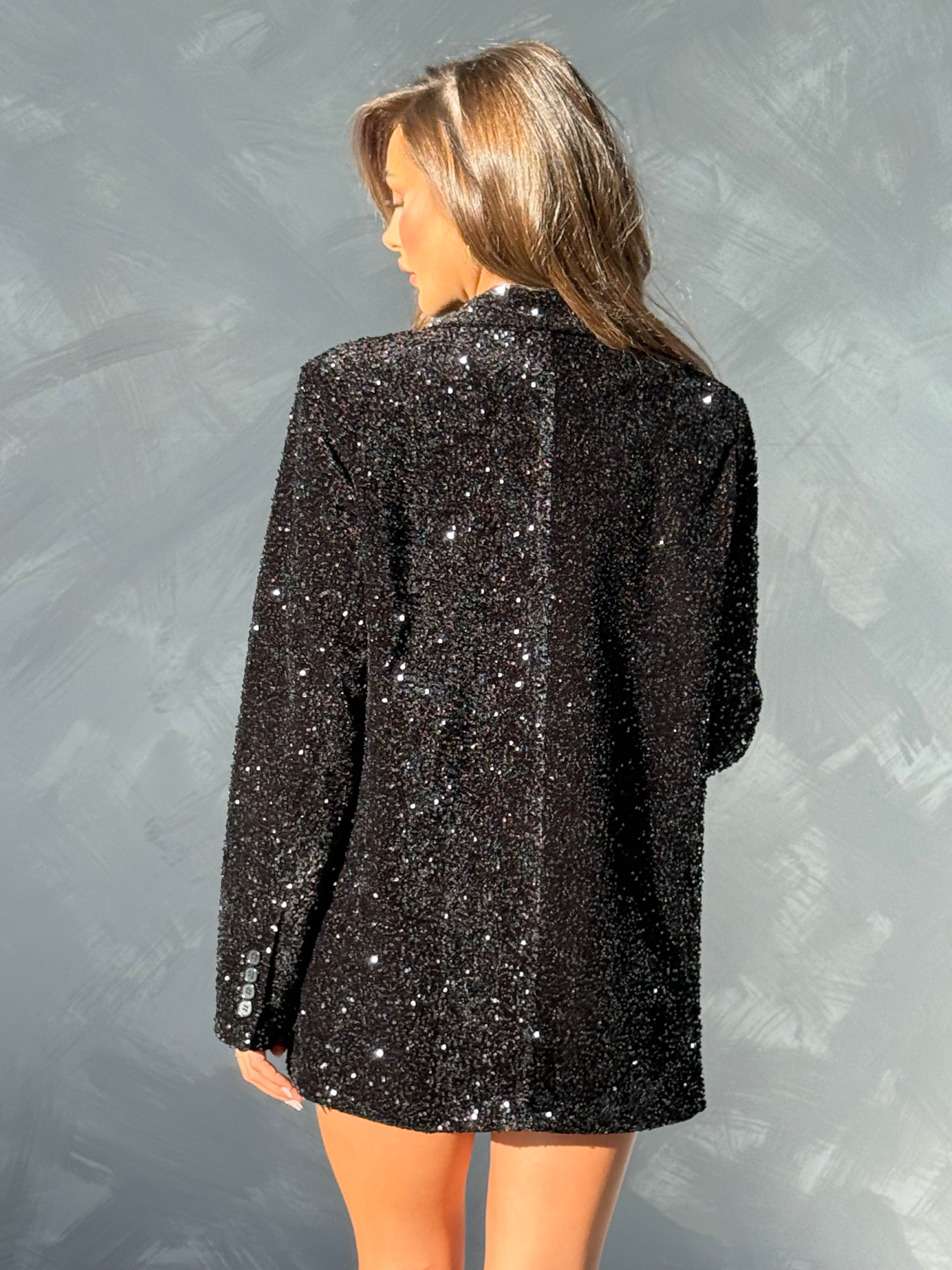 Turn heads in our brand new VIENNE sequin blazer in black sequin.