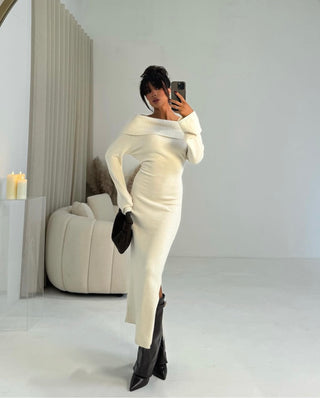 Caramella PALOMA Bardot Knit Mini Dress and Scarf set In Vanilla Cream