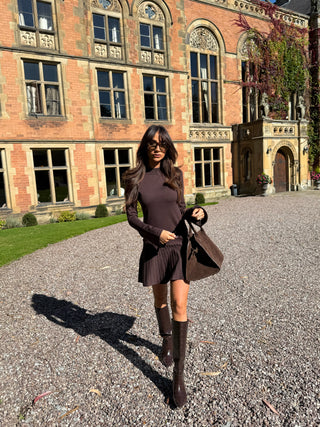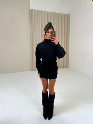 SAFFRON Long Sleeved Embroidered High Neck Mini Dress In Black