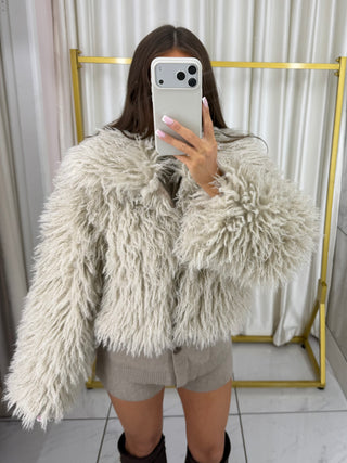 ASPEN Long Faux Mongolian Collared Coat In Chocolate Plum