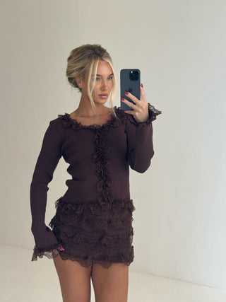 PRE ORDER SHIPS WITHIN 1/2 WEEKS CASSIE High Waisted Sequin Mini Shorts In Chocolate
