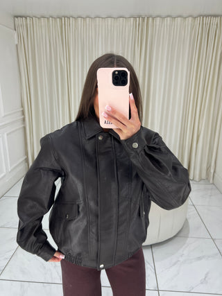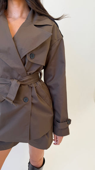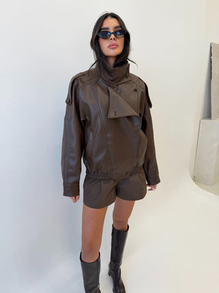 Caramella CAMILLE Knit Button Up Collared Cardigan & Mini Short Co-Ord In Chocolate