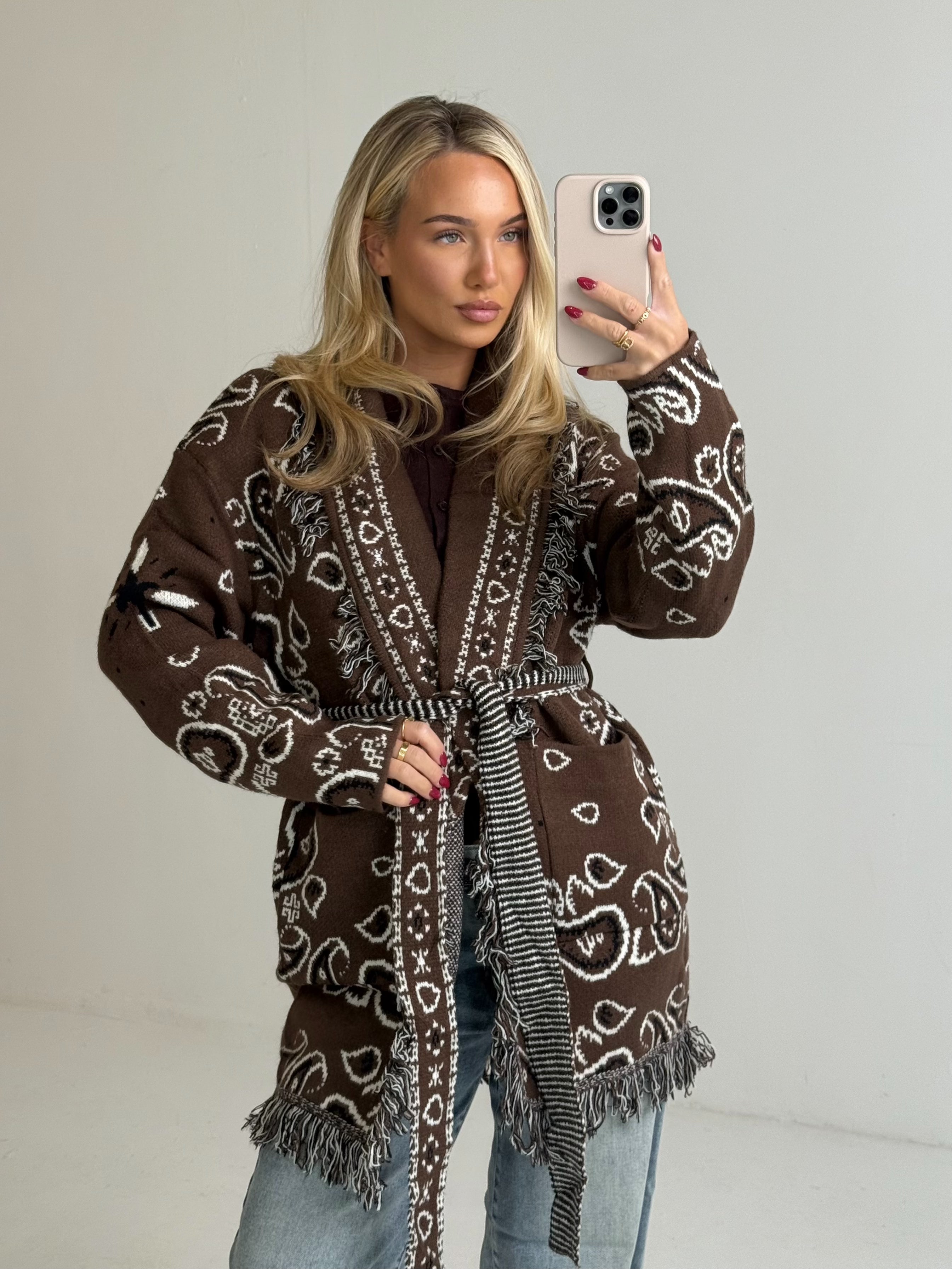 Stand out from the crowd with our brand new Aztec cardigan. With a matching belt and frill trim we are obsessed!
