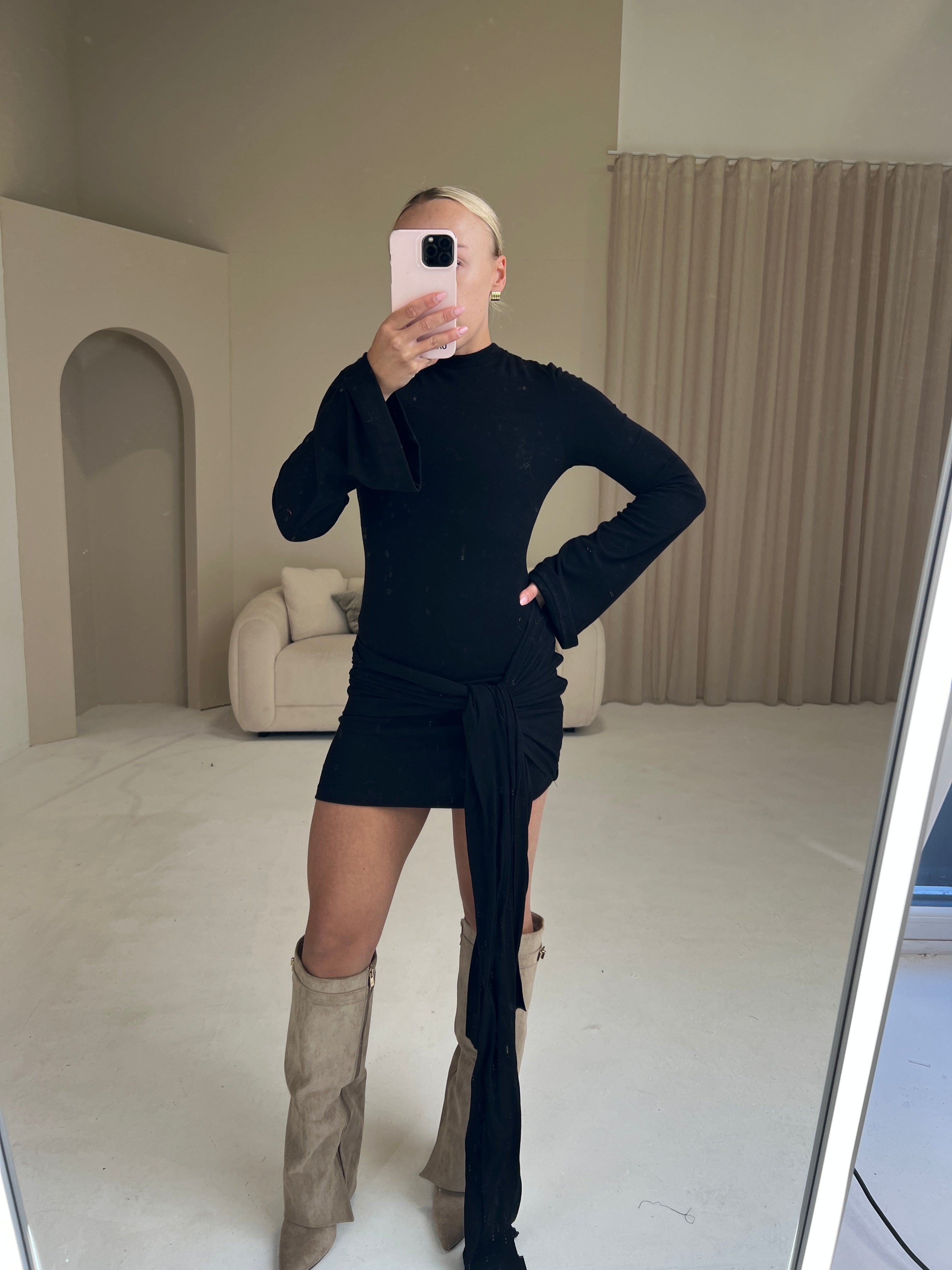 Introducing Eden.. our brand new long sleeved fine knit mini dress with drape.