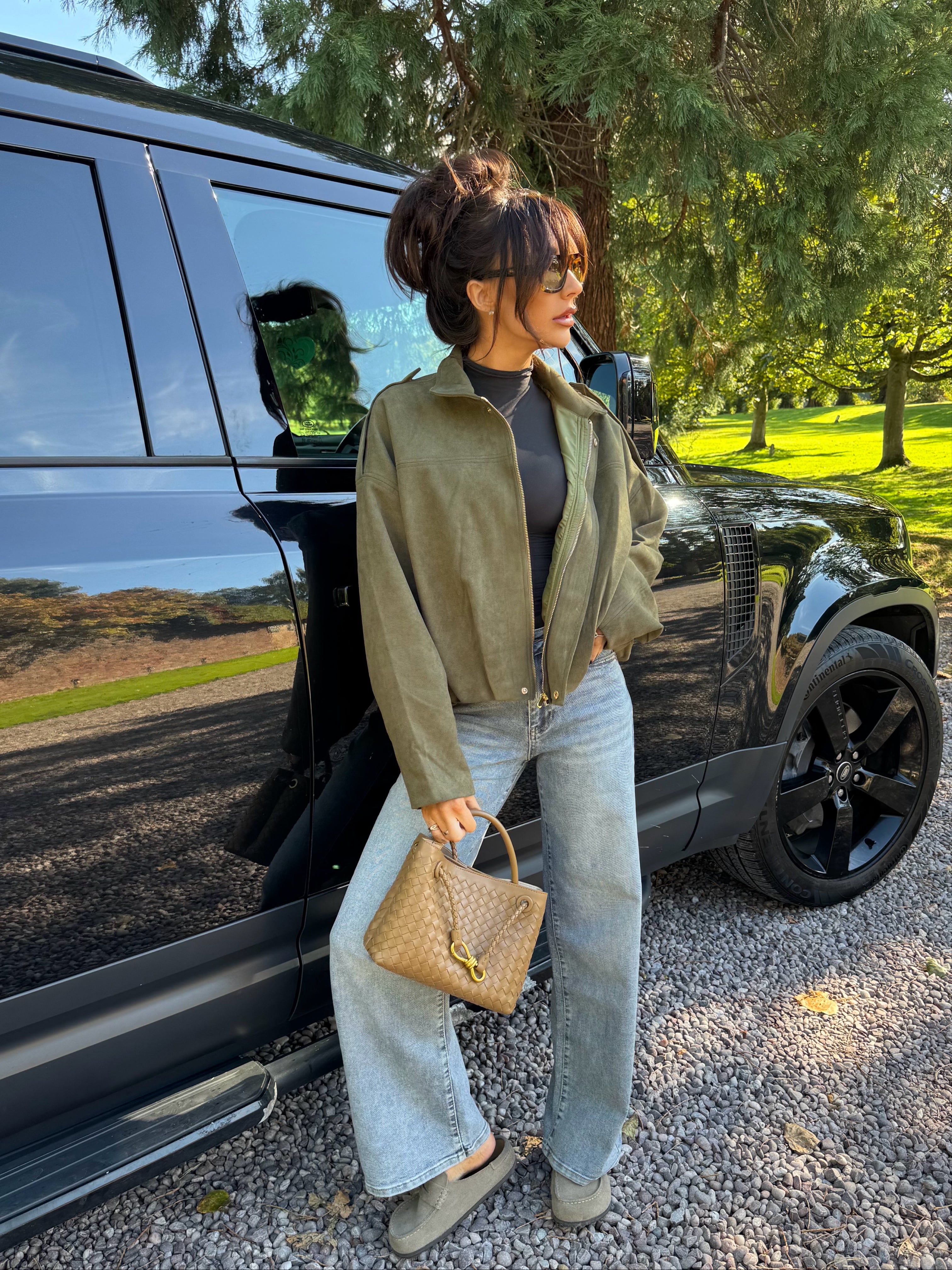 MAPLE Long Sleeved Suede Look Bomber Jacket In Khaki