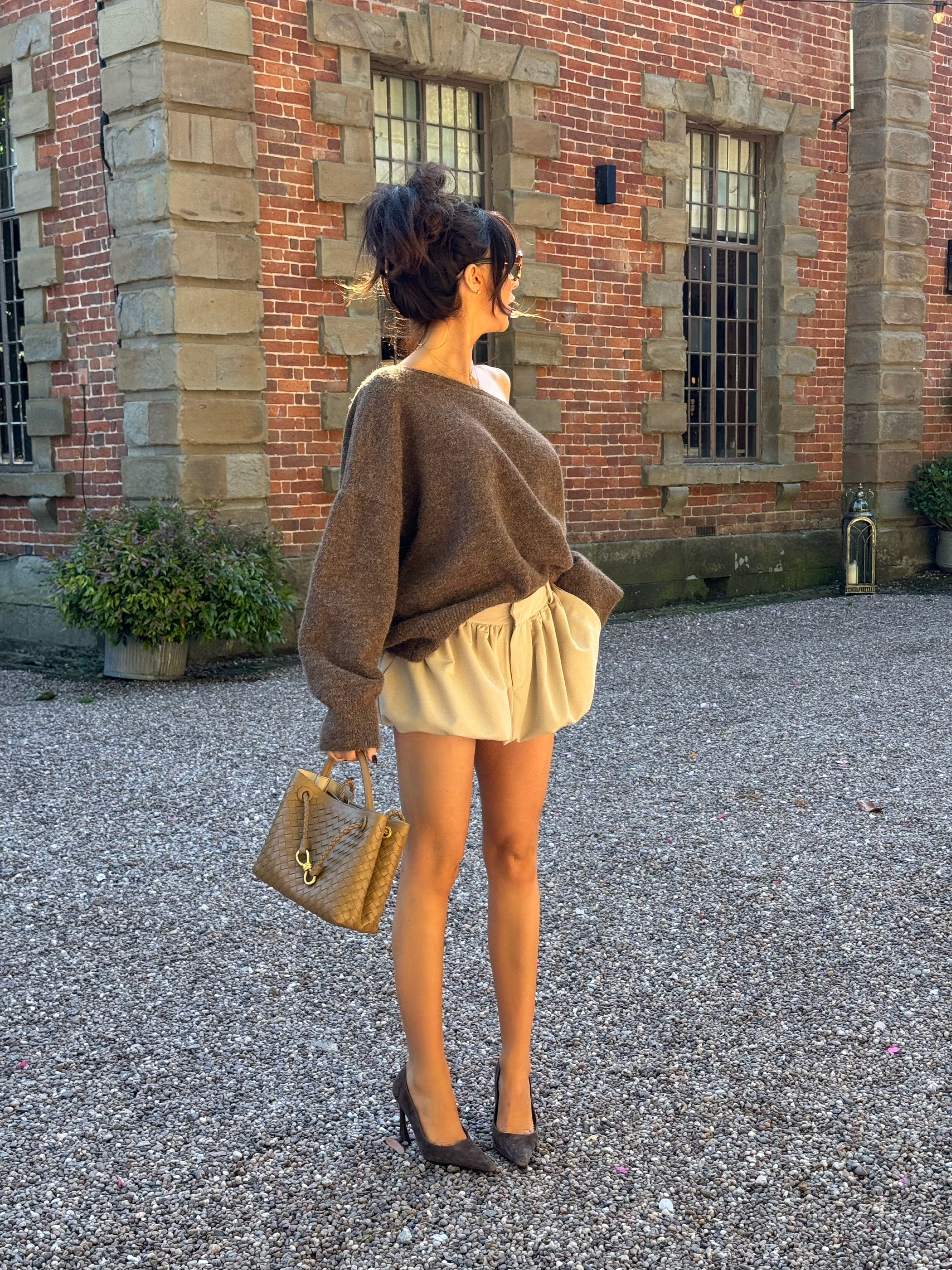 MARGOT One Shoulder Long Sleeved Jumper In Coffee