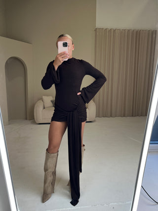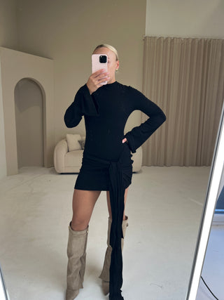 Caramella CONSTANCE Glitter Boucle Bardot Mini Dress in Black