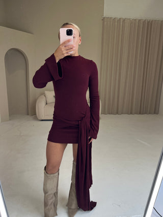 Caramella ADDISON Lantern Sequin Mini Dress in Bordeaux