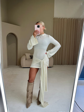 Caramella PALOMA Bardot Knit Mini Dress and Scarf set In Vanilla Cream