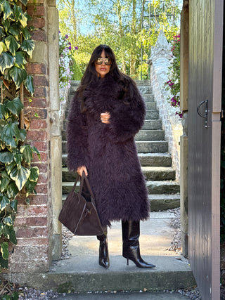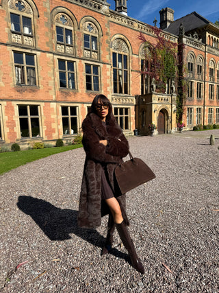 PRE ORDER SHIPS WITHIN 2 WEEKS FALLON Longline Faux Fur Coat with Belt in Mink