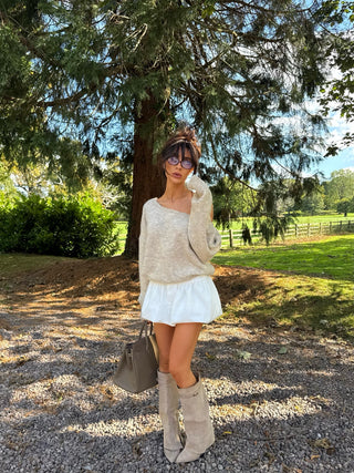 Caramella CAMILLE Knit Button Up Collared Cardigan & Mini Short Co-Ord In Oatmeal