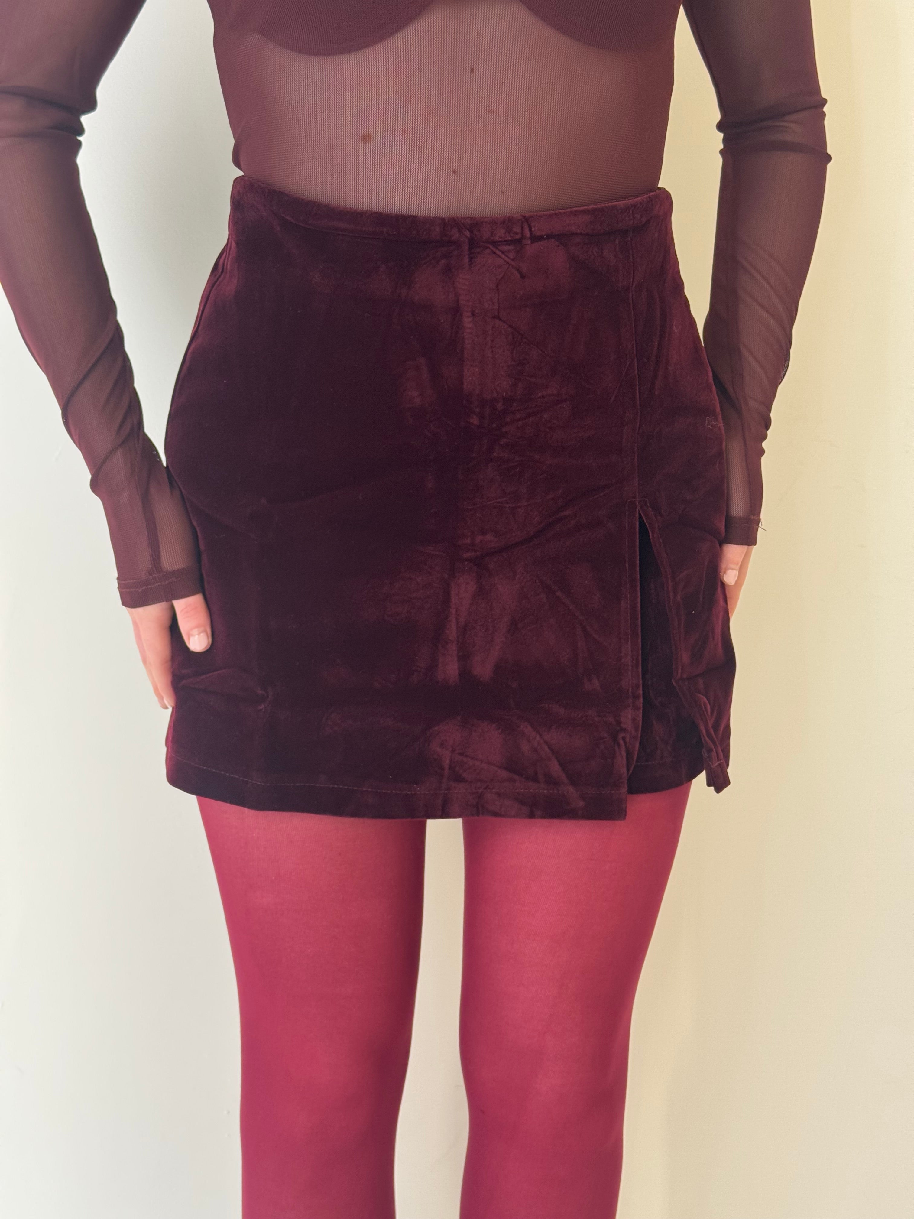 SEREN Faux Suede Skort In Burgundy